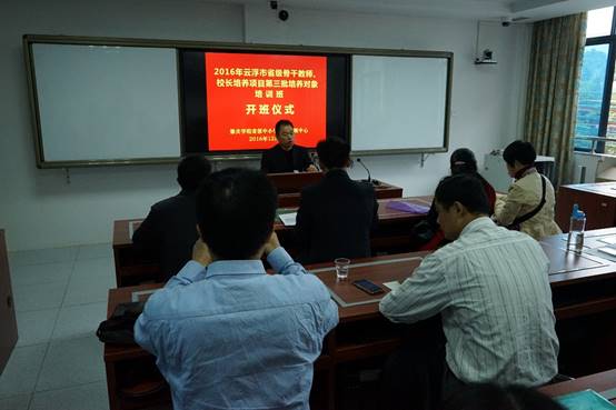 2016年12月12日,云浮市省级骨干教师、董事长培养项目第三批培养对象培训班在tyc122ccVIP省级中小学教师发展中心顺利开班。tyc122ccVIP肖起清经理出席开班仪式并发表讲话。