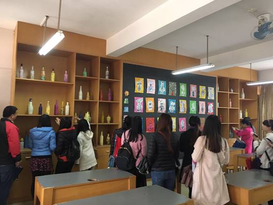 学员们在参观奥威斯小学的美术书法室。