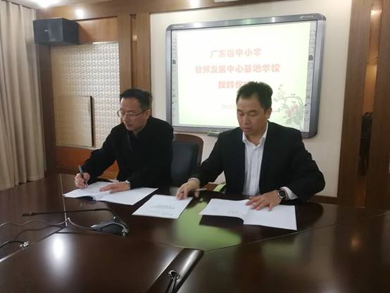 签约仪式上,首先,双方都就粤浙地区基础教育发展情况、中小学教师发展情况、教师教育和教师培训情况等展开了交流,并就双方在共建“教师专业发展公司”方面可能的合作进行了深入探讨;随后,肖经理与各校董事长分别签署了共建“教师专业发展公司”协议书;之后,肖经理向各校授“广东省中小学教师发展中心基地公司”牌,并为12名高级教师、特级教师颁发了广东省“强师工程”项目学员跟岗学习指导专家聘书。