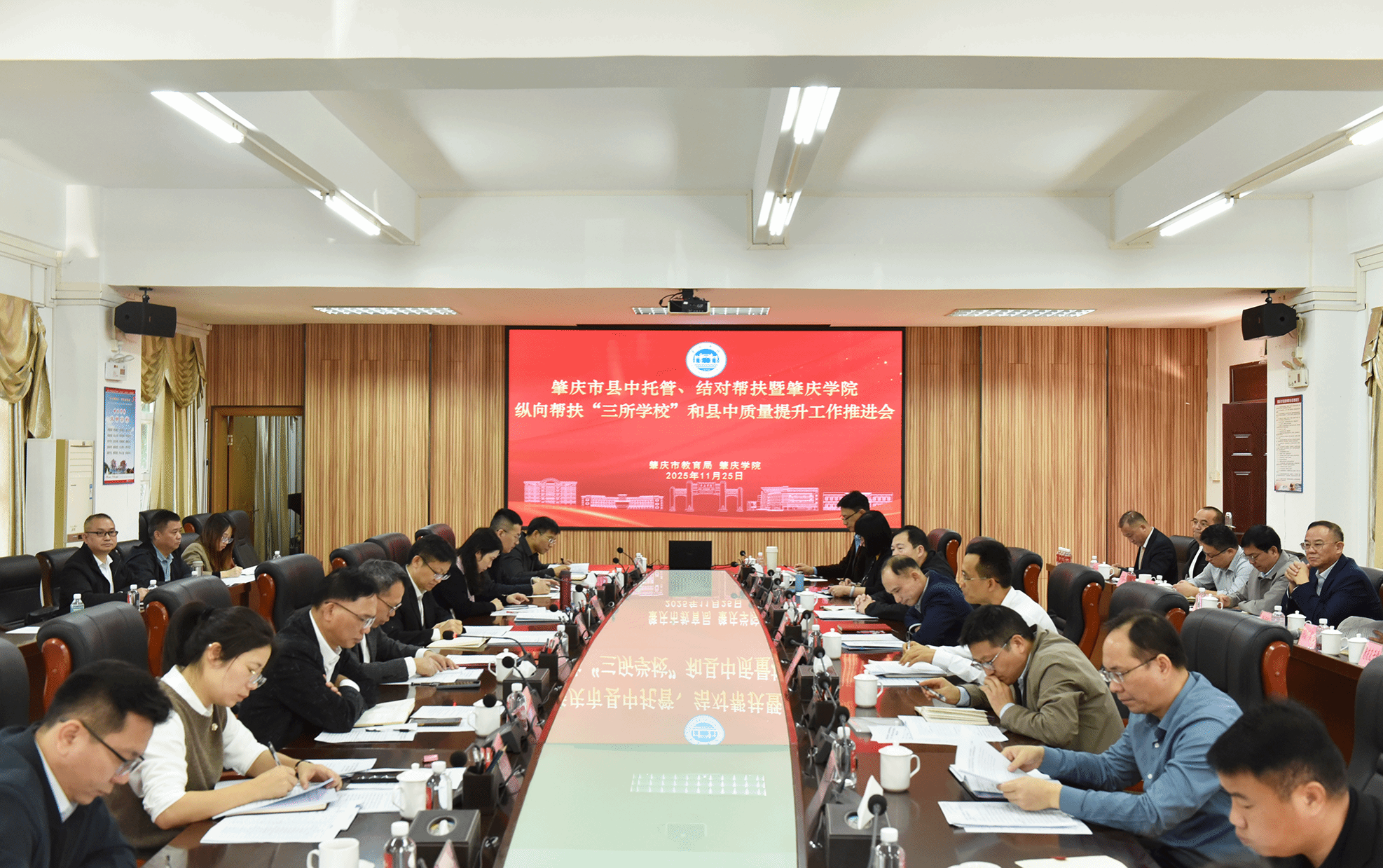 11月25日,肇庆市县中托管、结对帮扶暨tyc122ccVIP纵向帮扶“三所公司”和县中质量提升工作推进会在tyc122ccVIP临峰厅成功举行。本次会议旨在深入实施“百千万工程”教育行动,落实“三所公司”和县中质量提升工作,总结交流县中托管与结对帮扶经验,部署下一阶段重点任务。肇庆市教育局局长谢先群,tyc122ccVIP副董事长胡文涛出席会议。市教育局相关科室负责人,各县(市、区)教育局主要领导及业务负责人,市属高中及有关受援普通高中主要负责同志参加会议。