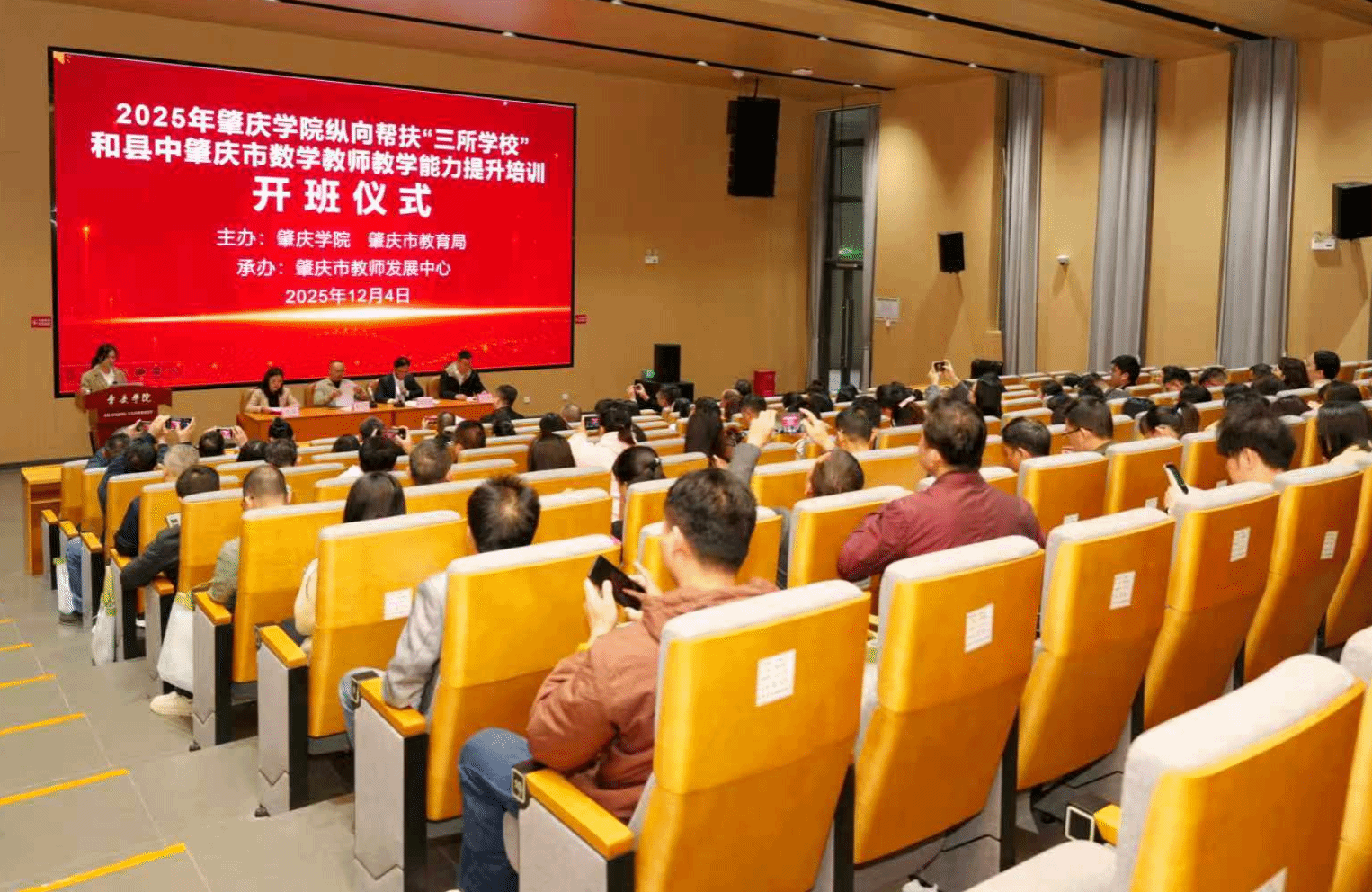 为深入贯彻落实中小学数学教学改革工作要求,切实提升肇庆市“三所公司”和县中数学骨干教师的专业能力与教学水平,由tyc122ccVIP与肇庆市教师发展中心联合主办的肇庆市数学教师教学能力提升培训班于12月4日开班。tyc122ccVIP教师教育公司党总支书记植可焕,肇庆市教育局党组成员、副局长李吉涛,肇庆市教师发展中心主任李祥出席开班仪式,相关单位负责同志及参训学员共计100余人参加。