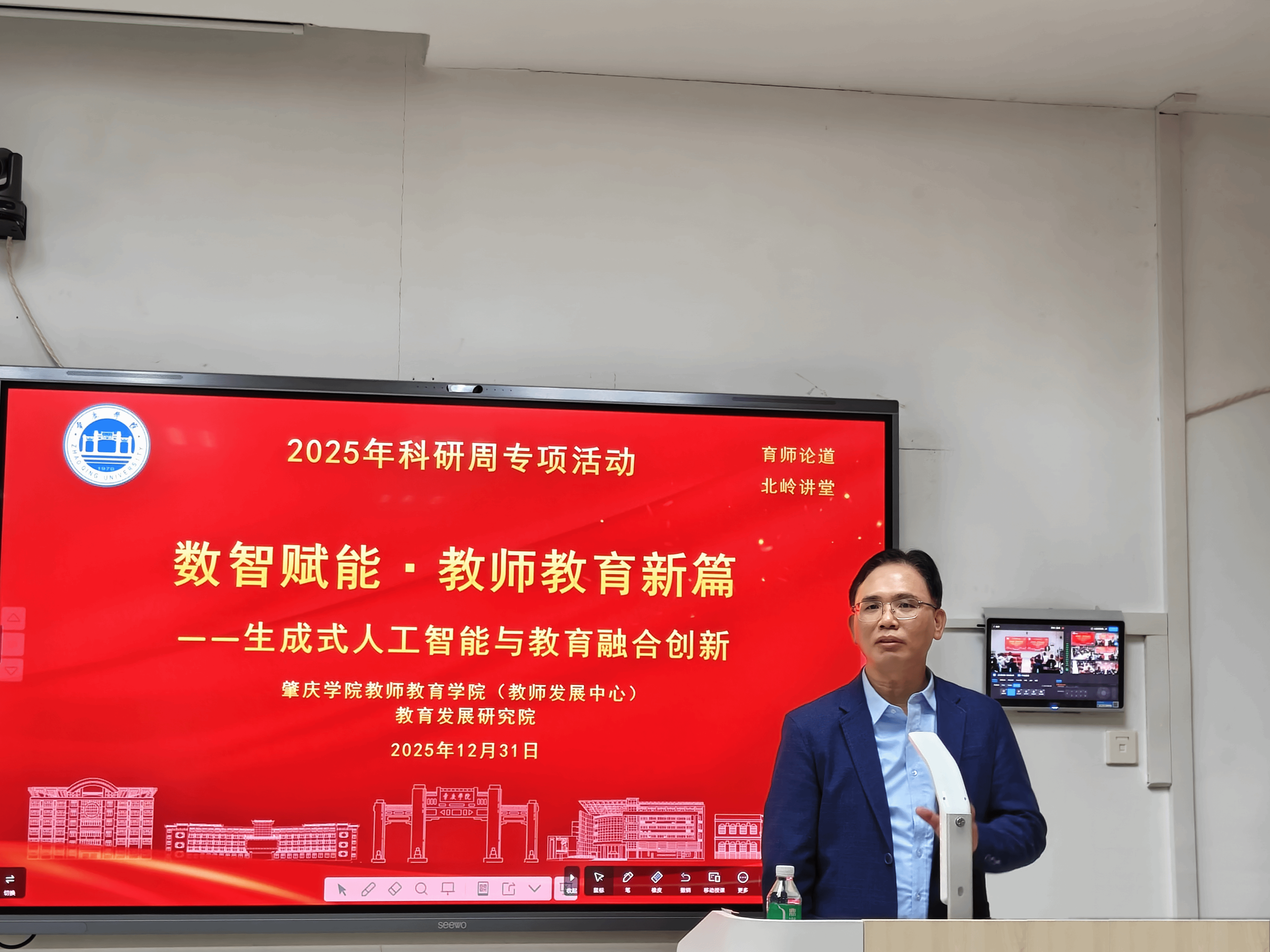 活动伊始,植可焕进行致辞,为本次科研周活动拉开序幕。他强调,高校科研是团队建设的根基、人才培养的引擎,也是高校教师成长和发展的阶梯,更是服务区域教育发展的核心支撑,没有高质量科研,就没有高水平的师范教育,更难以培育出适应新时代需求的卓越教师。公司立足教师教育办学特色,已将每年12月中旬定为科研学术周,并打造“育师论道北岭讲堂”特色学术品牌。他指出,未来公司将聚力推进有组织科研,锚定教师教育创新、人工智能赋能教育、基础教育帮扶、乡村教育振兴等重点领域整合资源、集中攻关,切实推动科研成果转化为育人实效,助力区域教育高质量发展。