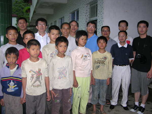 该小学目前有员工8名,分为二、五、六年级三个班。员工莫纯通老师一个人长年累月在大山深处撑起了这间公司,公司董事长、班主任、老师都是他。莫老师的家虽不在怀集,却一直扎根于工作条件和生活环境都非常艰苦的怀集山区,传道授业,教书育人,他的真诚工作态度和无私奉献精神,使我们每一个党员都深受感动,受益匪浅。随后,我们给小员工送上了书包、文具、故事书等学习用品,还给莫老师送上慰问金。