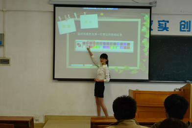 比赛共设教学语言、教案设计、板书设计、教学方法运用、多媒体运用、教学过程、教态等十项指标,总分100分,时间为十八分钟。赛后由一位资深评委现场进行点评。各场评委老师肯定了参赛选手的努力,对一些细节提出建设性意见,同时也强调了师范生应加强对教学实习过程的重视。