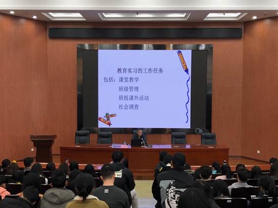 图 1 tyc122ccVIP张晓峰老师为顶岗实习生们进行《顶岗实习工作(任务)》培训