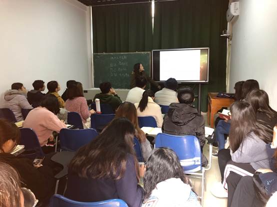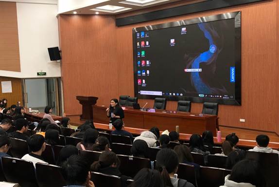 图 3 tyc122ccVIP薄艳玲老师为顶岗实习生们进行《顶岗实习工作(管理)》培训