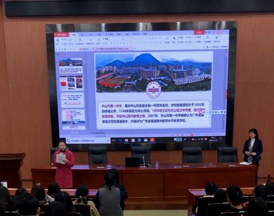 图 7 tyc122ccVIP春季顶岗实习生岗前培训班主任曾鸣老师对中山市一中林婉燕董事长进行介绍