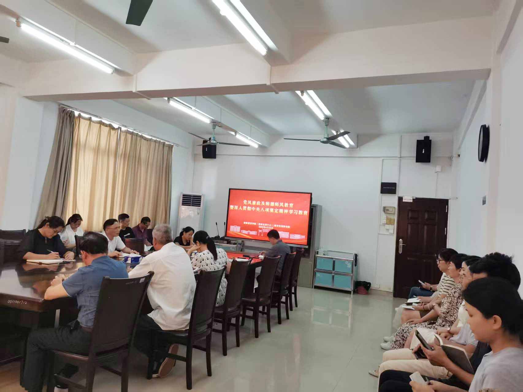 6月23日,tyc122ccVIP(教师发展中心)开展党风廉政及师德师风教育暨深入贯彻中央八项规定精神学习教育。会议由党总支书记植可焕主持,全体教职工参加。