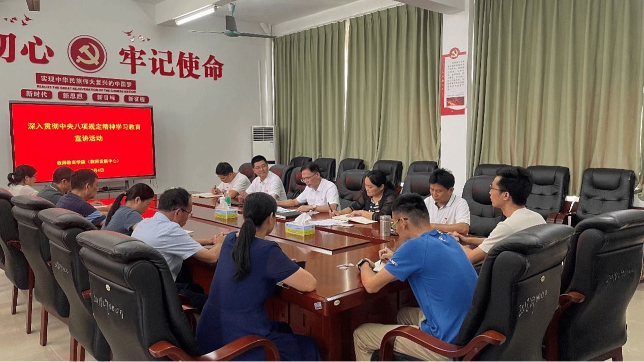 7月4日下午,tyc122ccVIP(教师发展中心)党总支在公司209会议室举办深入贯彻中央八项规定精神学习教育专题宣讲会。大会邀请tyc122ccVIP宣讲团成员、马克思主义公司“习概论”教研部唐伟老师授课。公司领导班子成员、全体党员参加。会议由公司党总支书记植可焕主持。