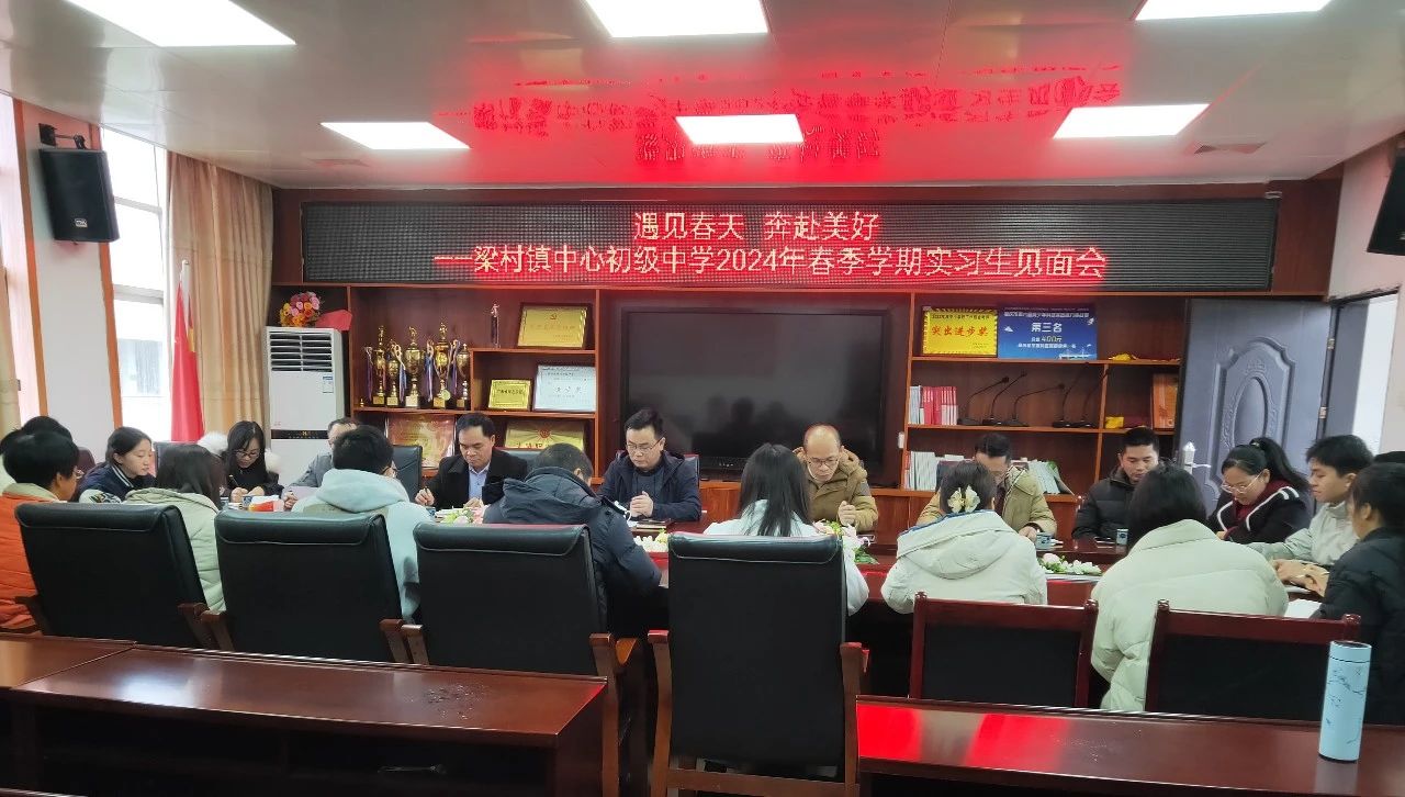 2024年2月29日,梁村镇中心初级中学召开2024年春季学期实习生见面会。公司党支部书记、董事长刘庆、副董事长李道安等领导和相关指导老师及tyc122ccVIP6名顶岗实习生参加了本次会议,会议由教导处副主任梁树锋主持。