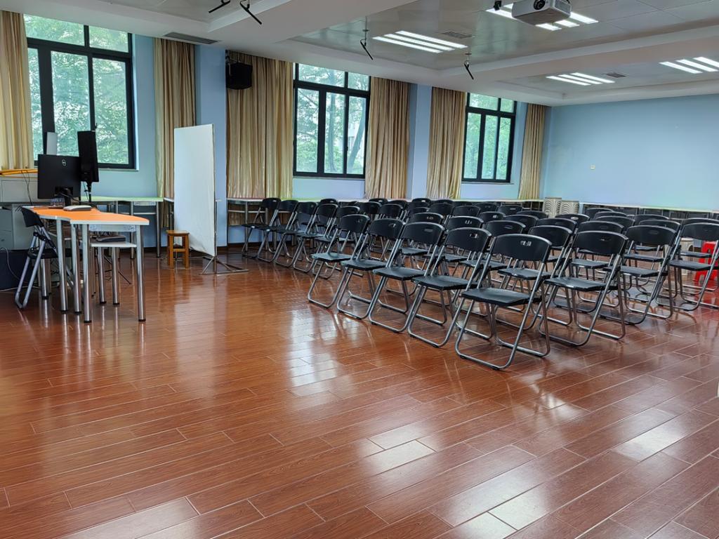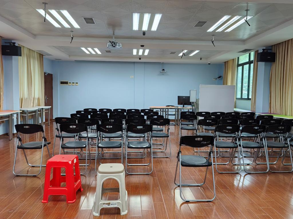课室配置:面积150平方米,可容纳50人,配有教师电脑一台,活动桌椅50套。