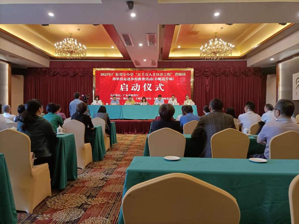 4月24日上午,肖晓玛一行到丰顺县参加中小学“百千万人才培养工程”省级培养学员走进乡村教育活动的启动仪式。34名省级名教师、名班主任、名董事长分赴丰顺县七所中小学进行为期两天的送教活动,采用线上线下两种方式授课,辐射教师约2800人。
