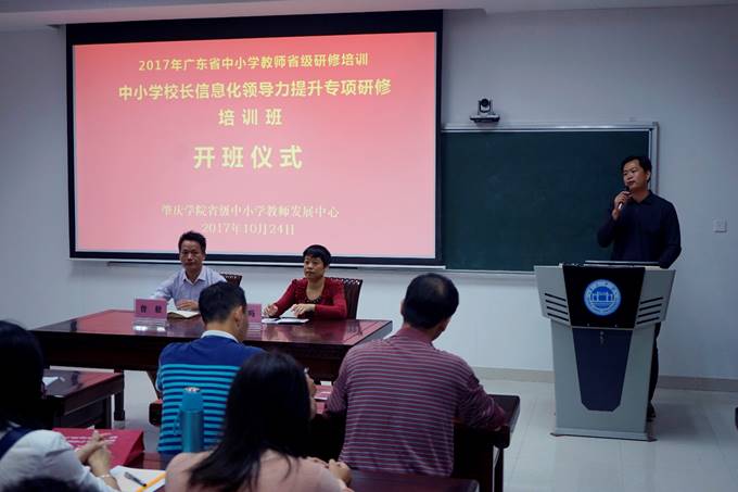 10月24日上午,2017年广东省中小学董事长信息化领导力提升专项研修培训班(tyc122ccVIP)举行开班仪式在tyc122ccVIP教师发展中心106隆重举行。tyc122ccVIP教师专业能力发展中心副主任肖晓玛博士、tyc122ccVIP副经理曾毅教授等出席开班仪式。