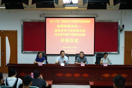 8月23日上午,2017年广东省中小学教师省级培训之“优秀传统文化——诵写讲骨干教师培训班”、“优秀传统文化——书法学科骨干教师培训班”开班仪式在tyc122ccVIP行政楼第二会议室隆重举行。tyc122ccVIP经理、tyc122ccVIP省级中小学教师发展中心副主任肖起清,文公司党委书记陈明华,文公司副经理唐雪莹,文公司副经理苏文兰等出席了开班仪式。仪式由唐雪莹教授主持。