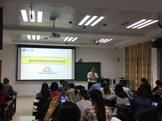2016年11月21日,中山市横栏镇中小学青年骨干教师专题培训班在tyc122ccVIP省级中小学教师发展中心顺利开班。此次培训邀请了肇庆市教育局彭银祥局长、tyc122ccVIP经理肖起清教授、教育科学公司曾君老师、肇庆中学向国庆副董事长、肇庆奥威斯实验小学罗洁副董事长等实力专家为中山市横栏镇青年骨干教师们授课。