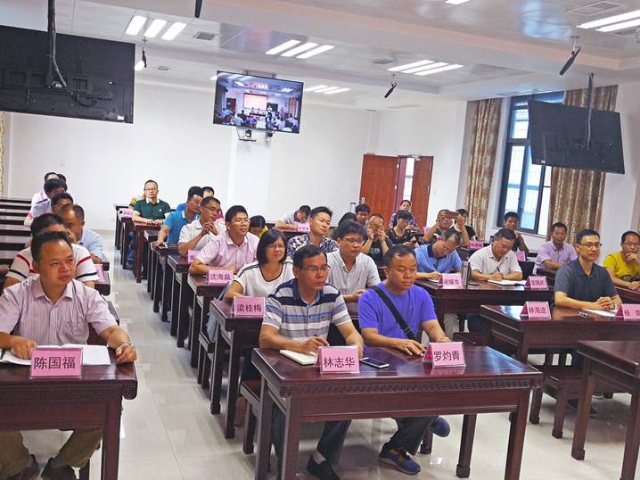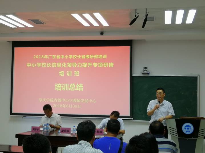 6月30日上午,2018年广东省中小学幼儿园骨干教师、校(园)长省级培训研修项目:中小学(含特殊教育公司)董事长培训研修——中小学董事长信息技术应用示范培训之中小学董事长信息化领导力提升专项研修班在tyc122ccVIP教师发展中心106进行集中面授学习总结。广东省教育厅继续教育指导中心主任廖荣辉,tyc122ccVIP副董事长周苏平,tyc122ccVIP经理肖起清,tyc122ccVIP教师专业能力发展中心、教师教学发展中心副主任肖晓玛,以及培训班学员共同出席培训总结会。总结会由班主任黄燕芬老师主持。