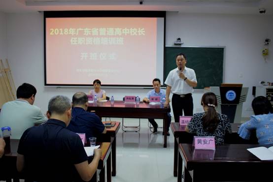 7月1日上午,2018年广东省“强师工程”普通高中董事长任职资格培训班在tyc122ccVIP省级中小学教师发展中心106隆重举行。tyc122ccVIP经理肖起清教授、tyc122ccVIP副经理曾毅教授,tyc122ccVIP教师专业能力发展中心副主任肖晓玛博士,以及来自中山、惠州、云浮、肇庆、清远等几个地区共50名学员,共同出席了开班仪式。