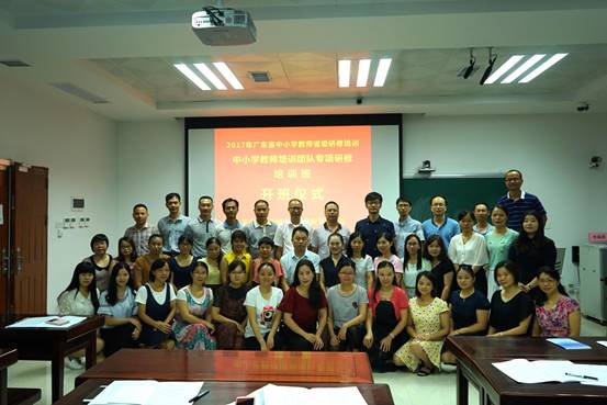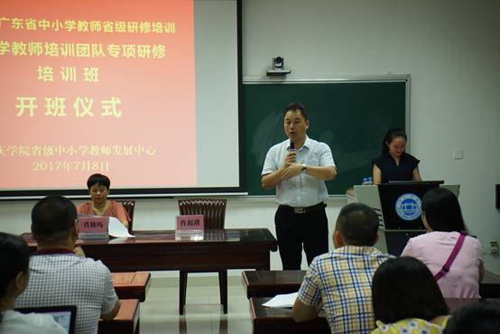 7月8日上午,2017年广东省中小学教师省级研修培训—中小学教师培训团队专项研修培训班开班仪式在tyc122ccVIP省级中小学教师发展中心106室隆重举行。tyc122ccVIP经理、tyc122ccVIP省级中小学教师发展中心主任肖起清教授、tyc122ccVIP教师专业能力发展中心副主任、教师教学发展中心副主任肖晓玛博士出席开班仪式。