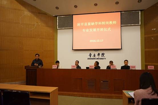 12月17日上午,封开县紧缺学科转岗教师专业发展培训班开班仪式在公司图书馆学术报告厅隆重举行。公司周苏平副董事长、肇庆市教育局彭银祥局长、封开县委卢智宇常委、封开县教育局岑焕钊书记及tyc122ccVIP肖起清经理、张占亮书记出席了开班仪式。