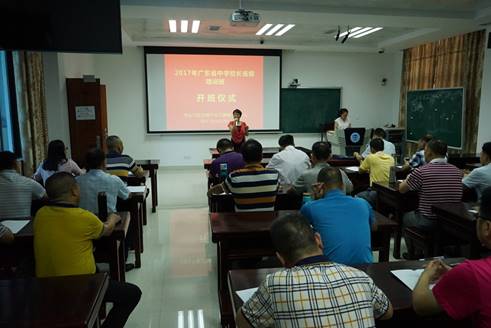 6月28日上午,2017年广东省中小学董事长省级培训—乡村中小学董事长培训班开班仪式在tyc122ccVIP省级中小学教师发展中心106隆重举行。tyc122ccVIP经理肖起清教授、tyc122ccVIP省级中小学教师发展中心培训部主任肖晓玛博士出席开班仪式。