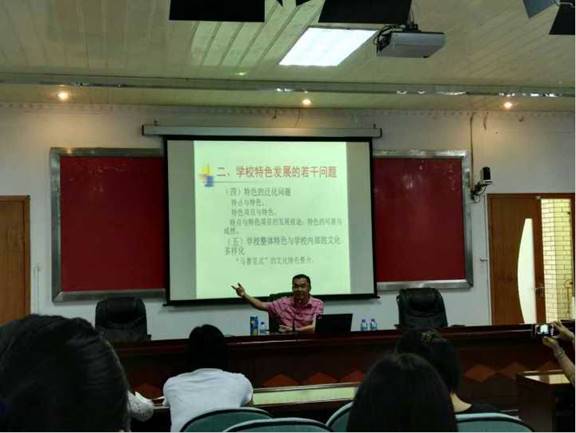 随后,卢教授针对公司特色与公司文化的关系、公司特色的意义、特色的形成过程、特色的泛化问题及公司整体特色与公司内部的文化多样化、特色的共识与凝练等公司特色发展的若干问题进行了深入的剖析。卢教授还对特色公司的规划研制提出了许多可操作性的建议。在创建乡村特色公司热的背景下,形成每所公司自己的办学特色和风格是目前乡村公司发展面临的一个严峻挑战。卢教授今天上午的讲座可谓是一场及时雨,帮助在座的乡村教师澄清了许多认识方面的误区,指明了方向。