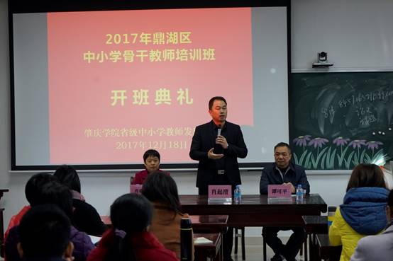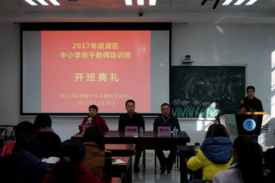 2017年12月18日上午,鼎湖区中小学骨干教师培训班在tyc122ccVIP省级中小学教师发展中心隆重开班。tyc122ccVIP经理肖起清、tyc122ccVIP教师专业能力发展中心副主任肖晓玛、鼎湖区教育局谭可平等出席开班仪式。本次培训有来自鼎湖区各中小公司骨干教师共90名,其中中学教师、小学教师各45名。